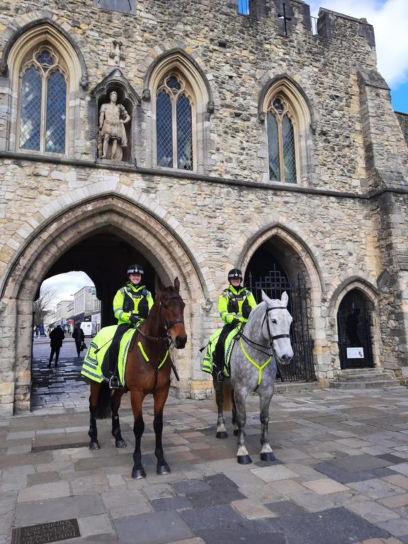 On Wednesday, Southampton Central’s Neighbourhood Policing Team were also joined by two police horses and their riders from the unit we share with Thames Valley Police who provided high visibility for our patrols in the city parks and Southampton High Street.