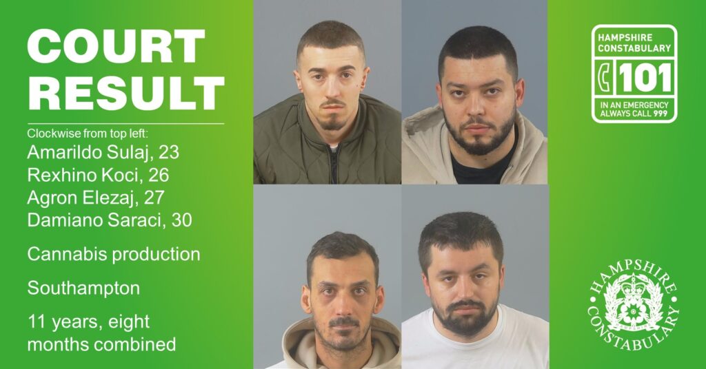 Four men have been jailed following a large-scale police operation in Southampton that dismantled a cannabis factory...