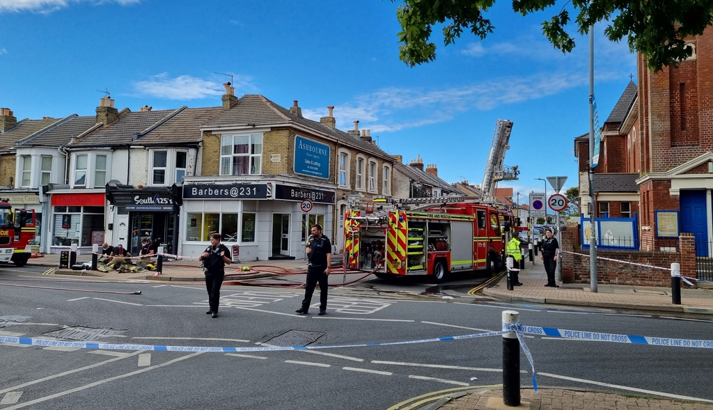 Firefighters from Portsmouth scrambled to tackle a blaze from the rear of a commercial premises in Southsea...