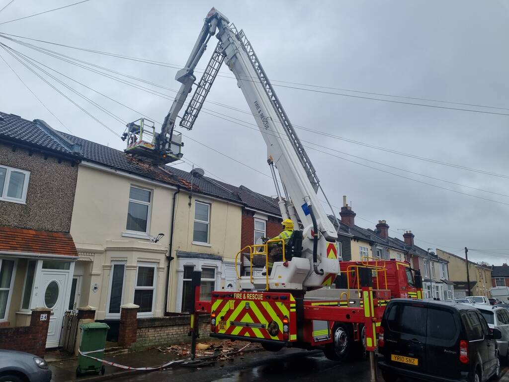 Firefighters from Hampshire and Isle of Wight Fire and Rescue Service were called after a chimney collapsed...