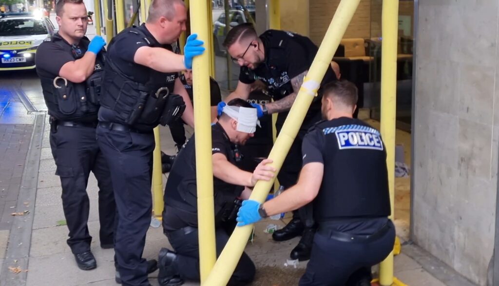 Police probe launched following footage of a man punched and kneed in head by a police officer...