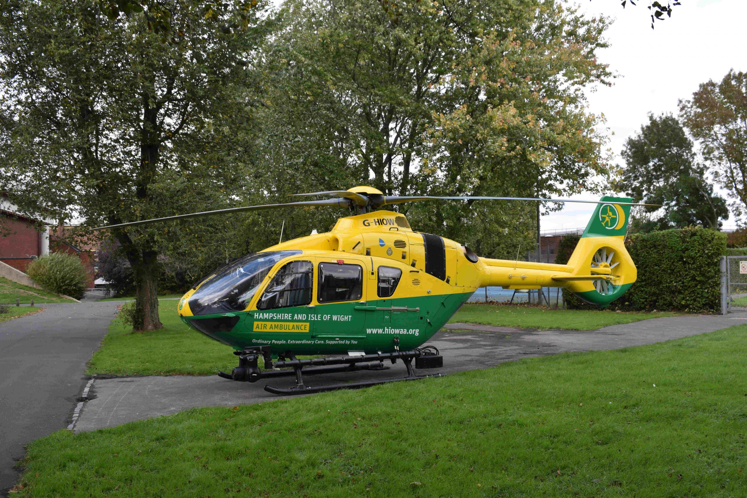 Air Ambulance lands in park after being scrambled to medical emergency in Portsmouth Hampshire and...