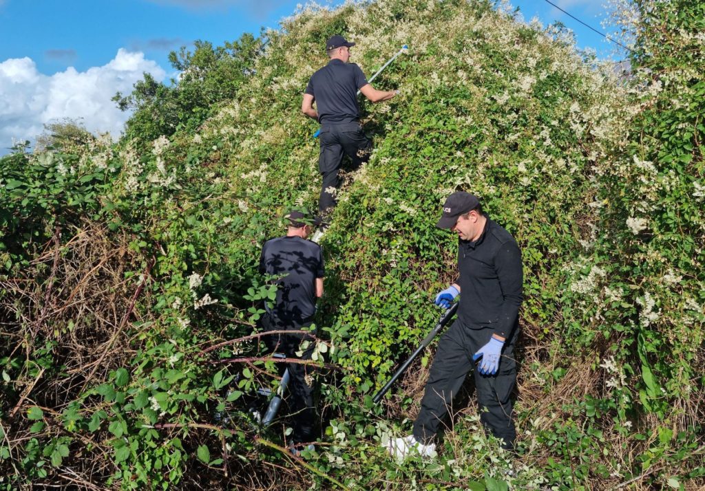 Crime scene investigators have been seen gathering forensic evidence, along with specialist search teams seen going through overgrowth at the property, in an effort to find the weapon that was used in the attack. A number of officers were also seen leaving the property with evidence bags of items they have recovered from the scene.