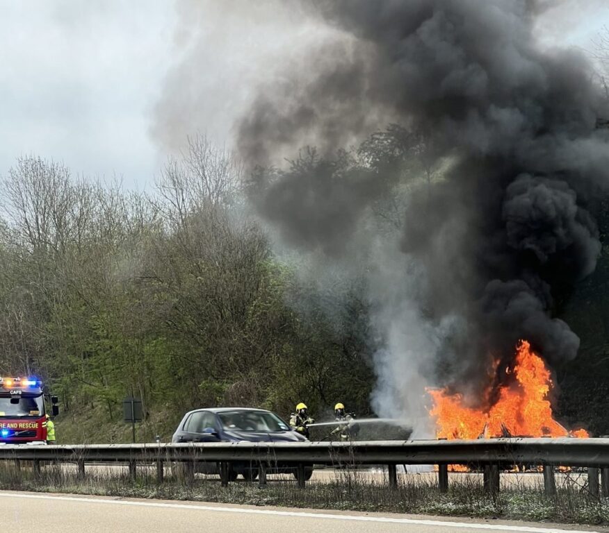 1 min read Breaking Hampshire Popham Car blaze causes motorway closure near to Popham Photo credit @sean321988 Basingstoke firefighters called to a car fire on the M3 shortly before...