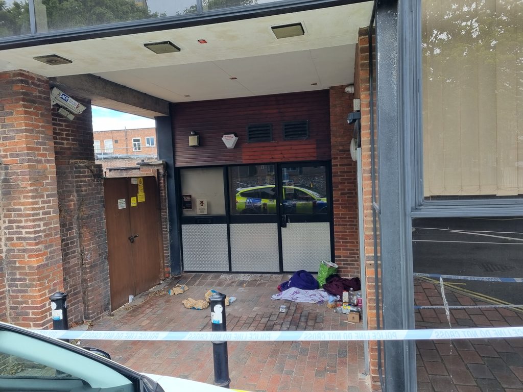 It’s understood that sometime in the early hours of this morning an incident happened that involved a homeless person using the entrance for shelter.